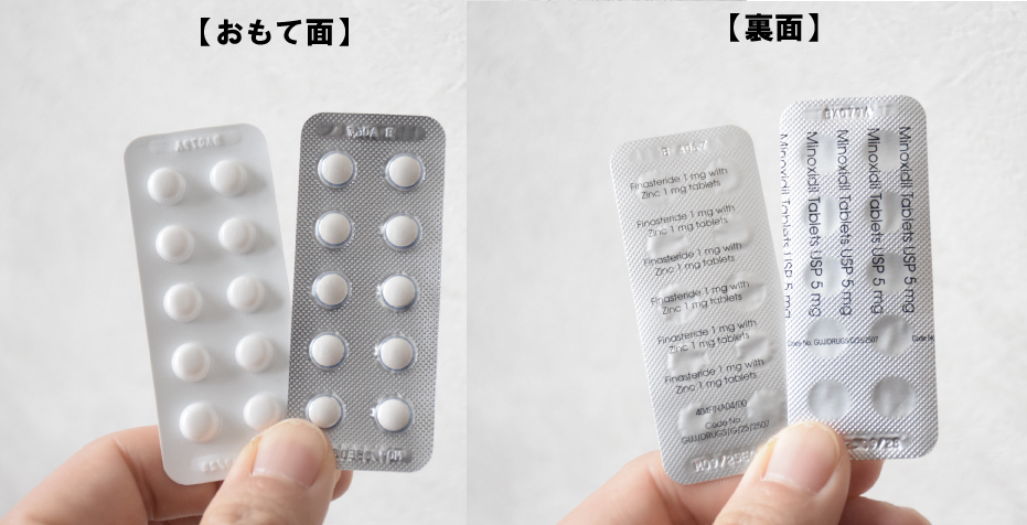 他のオンラインAGAクリニックでは、パッケージの色分けで薬を識別できたり、裏面に「薬の種類」や「容量」が明記されているケースが多くあります。