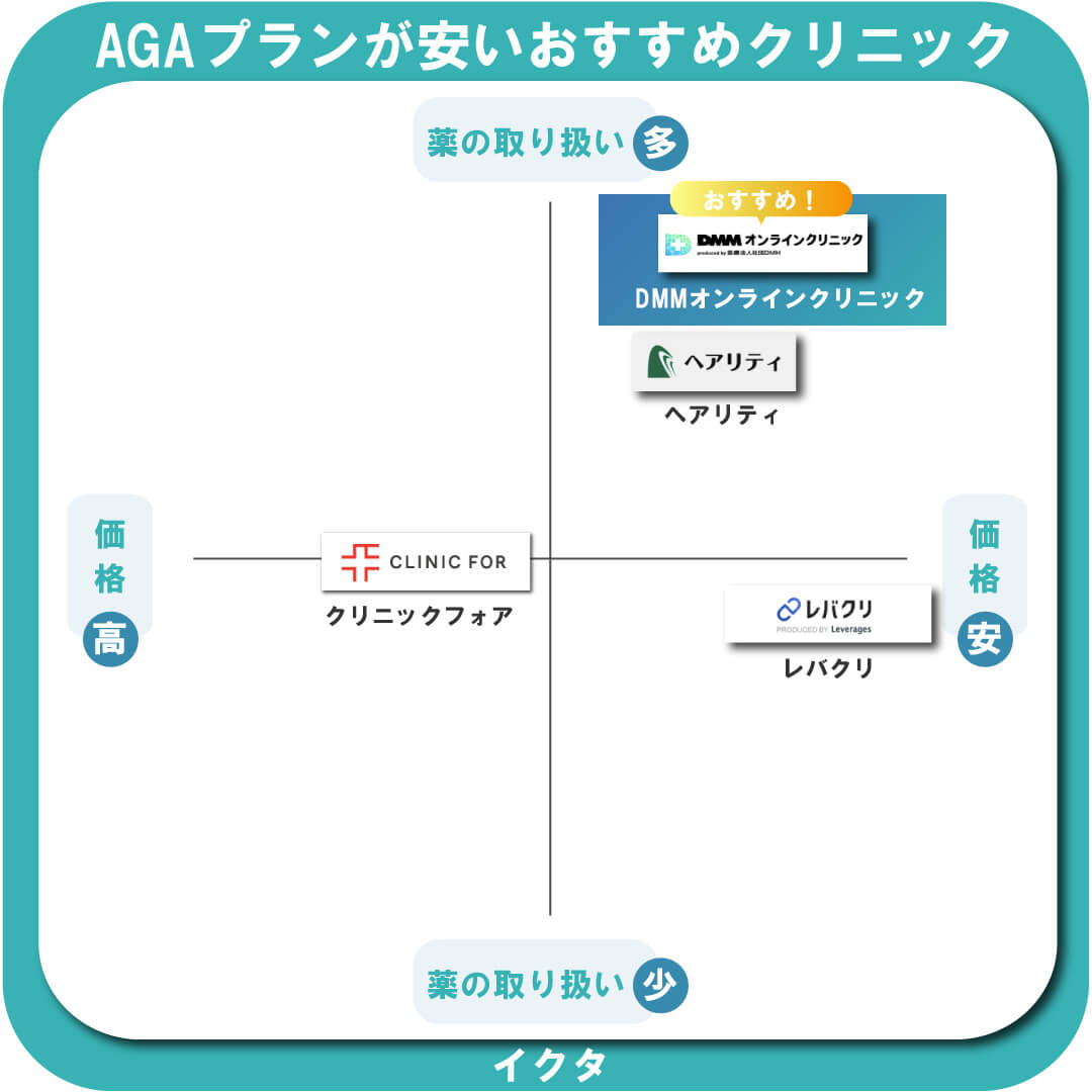 | AGAクリニック | DMMオンラインクリニック | レバクリ | |||
