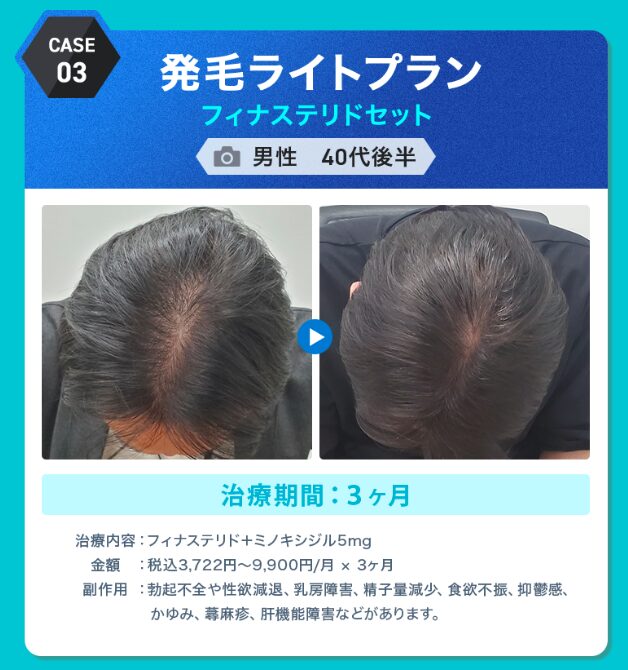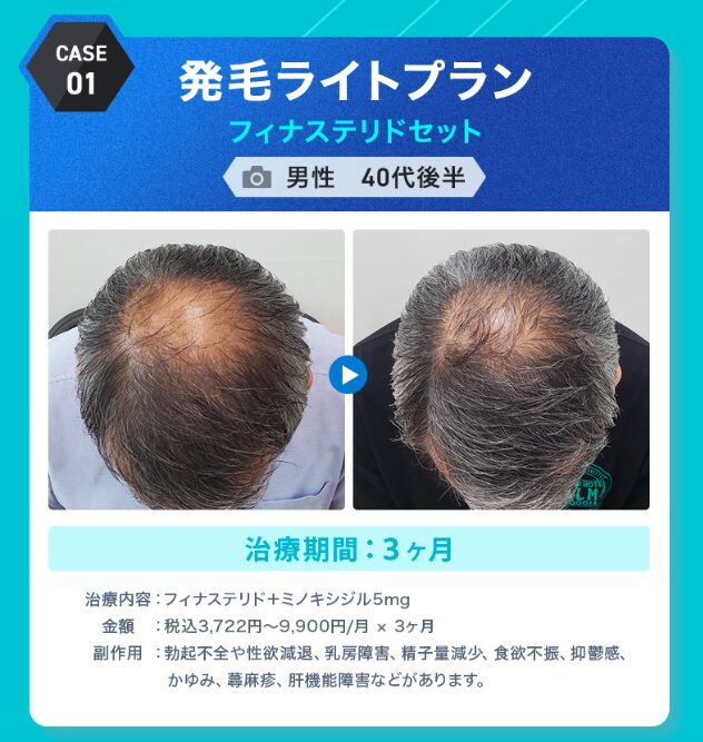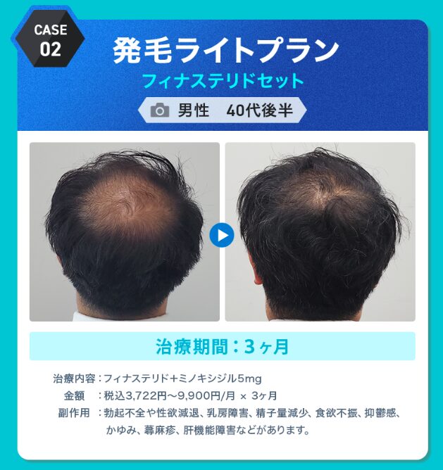 | 治療プラン | フィナステリド1mg・ミノキシジル5mg服用 |
