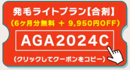 ・決済ページのクーポン欄に必ず「AGA2024C」とご記入ください。