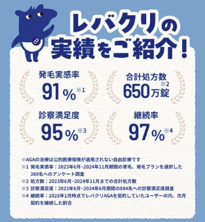 ※5 2025年1月時点でレバクリAGAを契約していたユーザー内、次月契約を継続した割合