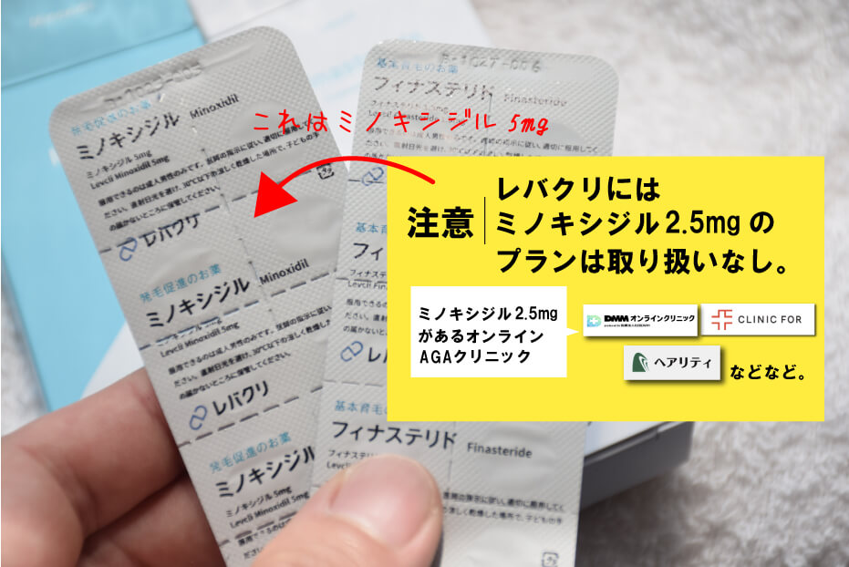 - レバクリでは2.5mgのミノキシジルは取り扱いなし