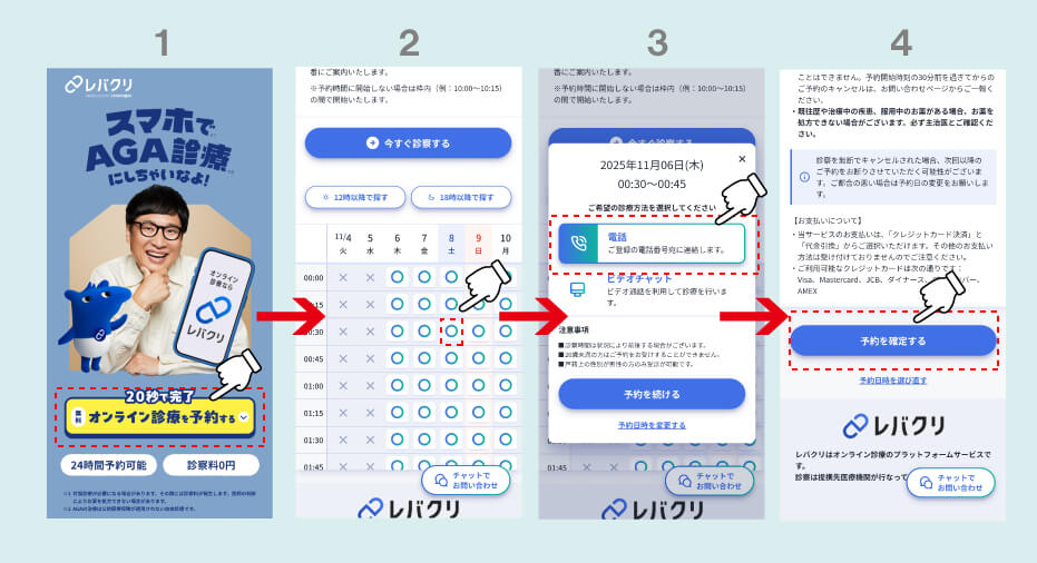 レバクリのオンライン診療の流れは次の通りです。