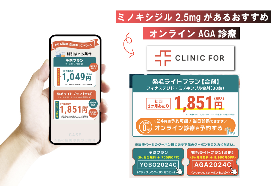 今回の記事ではミノキシジル2.5mgを取り扱っているオンラインAGA診療について比較しています。
