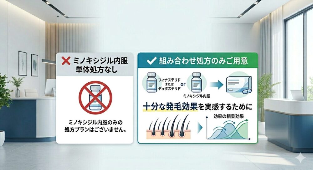 Oops HAIR(ウープス ヘア)ではミノキシジル内服を単体で処方するプランはありません。