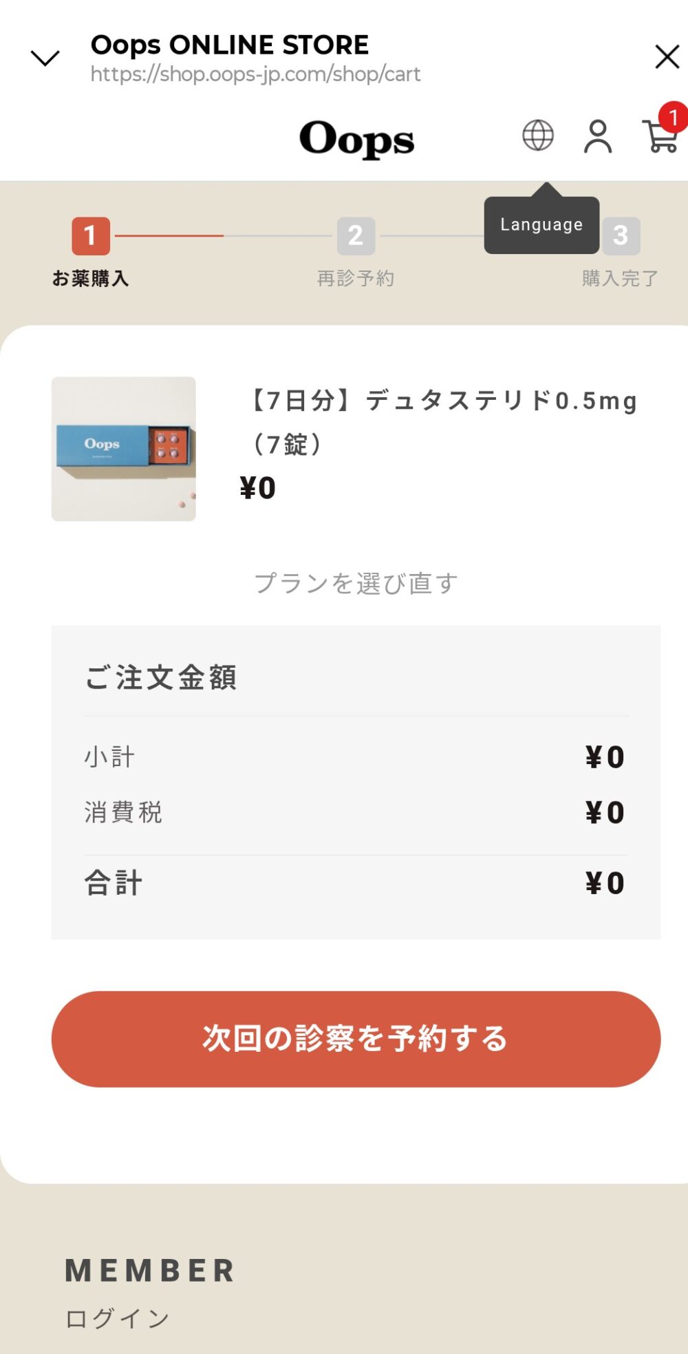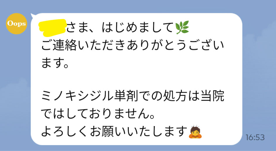 Oops HAIR(ウープス ヘア)の予約から薬が届くまでのこちら。