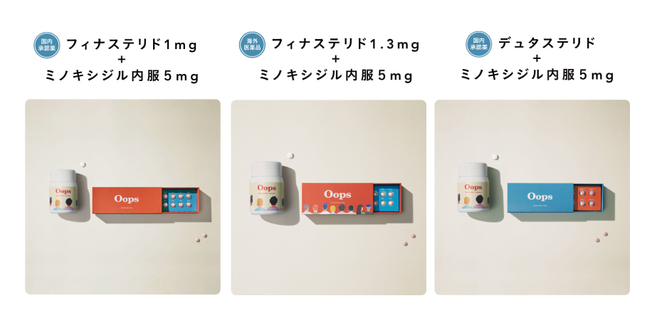 Oops HAIR(ウープス ヘア)ではフィナステリド(海外製・国内製)・デュタステリド(国内製)に加えミノキシジルのプランが単剤・単剤の処方になります。