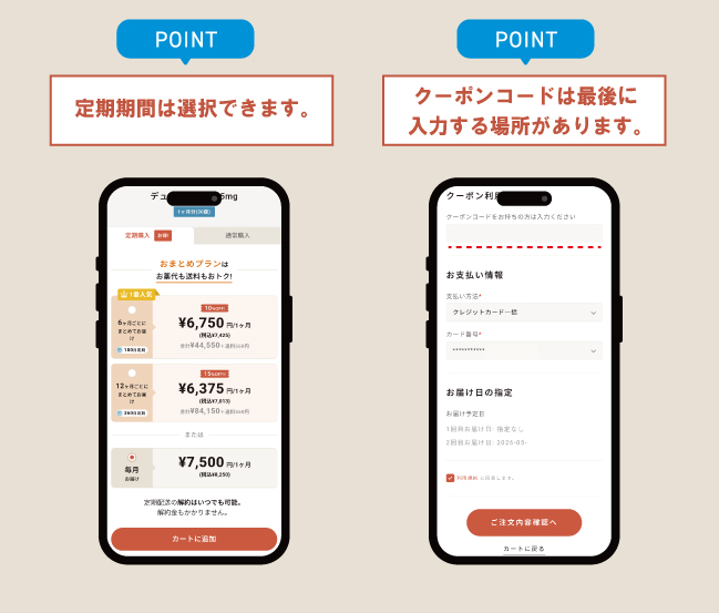また、クーポンコードは【購入手続きページ】の下部から入力できます。